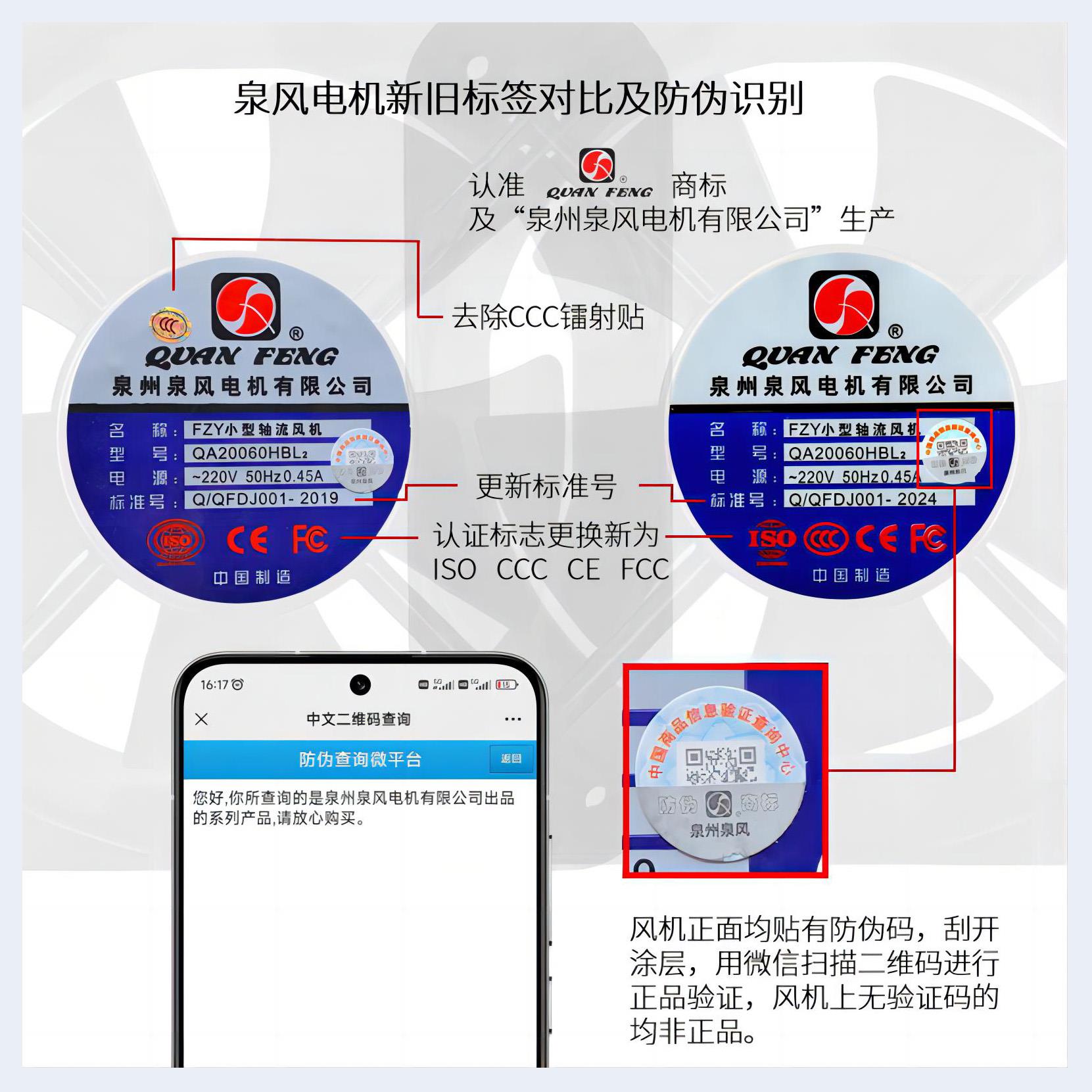 ??公司以建立現(xiàn)代化企業(yè)為目標(biāo),堅(jiān)持“科技是首要生產(chǎn)力”,于2000年通過了ISO9001:2000國際質(zhì)量體系認(rèn)證、產(chǎn)品已獲得CCC強(qiáng)制性認(rèn)證;美國UL、加拿大CUL、歐盟CE等安全認(rèn)證。并獲得國家微電機(jī)產(chǎn)品檢測中心授予“行業(yè)監(jiān)督抽查合格單位”及“九五質(zhì)量水平優(yōu)秀單位”,“泉風(fēng)”牌風(fēng)機(jī)被中國技術(shù)協(xié)會確定為 “風(fēng)機(jī)行業(yè)質(zhì)量十佳放心品牌”、“中國軸流風(fēng)機(jī)十佳名優(yōu)品牌”。“泉風(fēng)”牌產(chǎn)品已通過福建省新產(chǎn)品鑒定并獲得“福建省科技成果獎”、“省級優(yōu)秀新產(chǎn)品獎”、“省級科技進(jìn)步獎”。 2006年度被福建省確認(rèn)為“福建省高新技術(shù)企業(yè)”、“科技進(jìn)步先進(jìn)企業(yè)、“福建知名科技企業(yè)”。 “泉風(fēng)”牌商標(biāo)被評為“泉州市知名商標(biāo)”。 2009年“泉風(fēng)”牌商標(biāo)被評為“福建省著名商標(biāo)”。